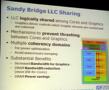 Caches for each processor core now are called Last level cache (LLC). In Sandy bridge the cache of last level (LLC) works at a constant fixed frequency. In this case the latency with the work of cache are reduced and the second port for the data load is introduced.