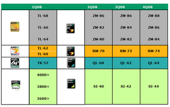The designation code of new mobile processors turion and Athlon is lion. AMD sempron sable single cores is processors on griffin core with 512 KB cache L2, energy consumptions 25 W and frequencies from 2 GHz. In the comparison with the current generation griffin mobile processors promise to be more energy-economical solutions.