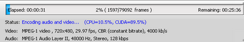 TMPGEnc 4.0 Xpress is one of the few software which use CUDA for Video decoding/encoding acceleration , According to the producer , CUDA will allow NVIDIA video card with CUDA 2.0 to encode video by 400% faster than a simple CPU .