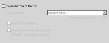 Well before passing directly to the results let u say a few words about the software limitation . First this software do not support G80 (8800ultra/GTX/GTS) , and work only with MPEG files . This software require almost the latest NVIDIA driver (178.14 or above : Currently the latest version is 178.24 ) . Using the version 178.14 we were unable to switch on CUDA mode , but with the latest NVIDIA driver 178.24 all went fine and we expected some amazing result .... But .....