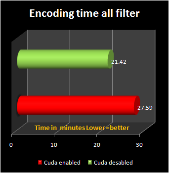 Results are pretty clear enabling CUDA in TMPGEnc 4.0 Xpress slow down the encoding process with or without filters . So be aware before dropping 100$ for this software expecting impressive performance , We hope that those performance issues will be fixed in the next software version .